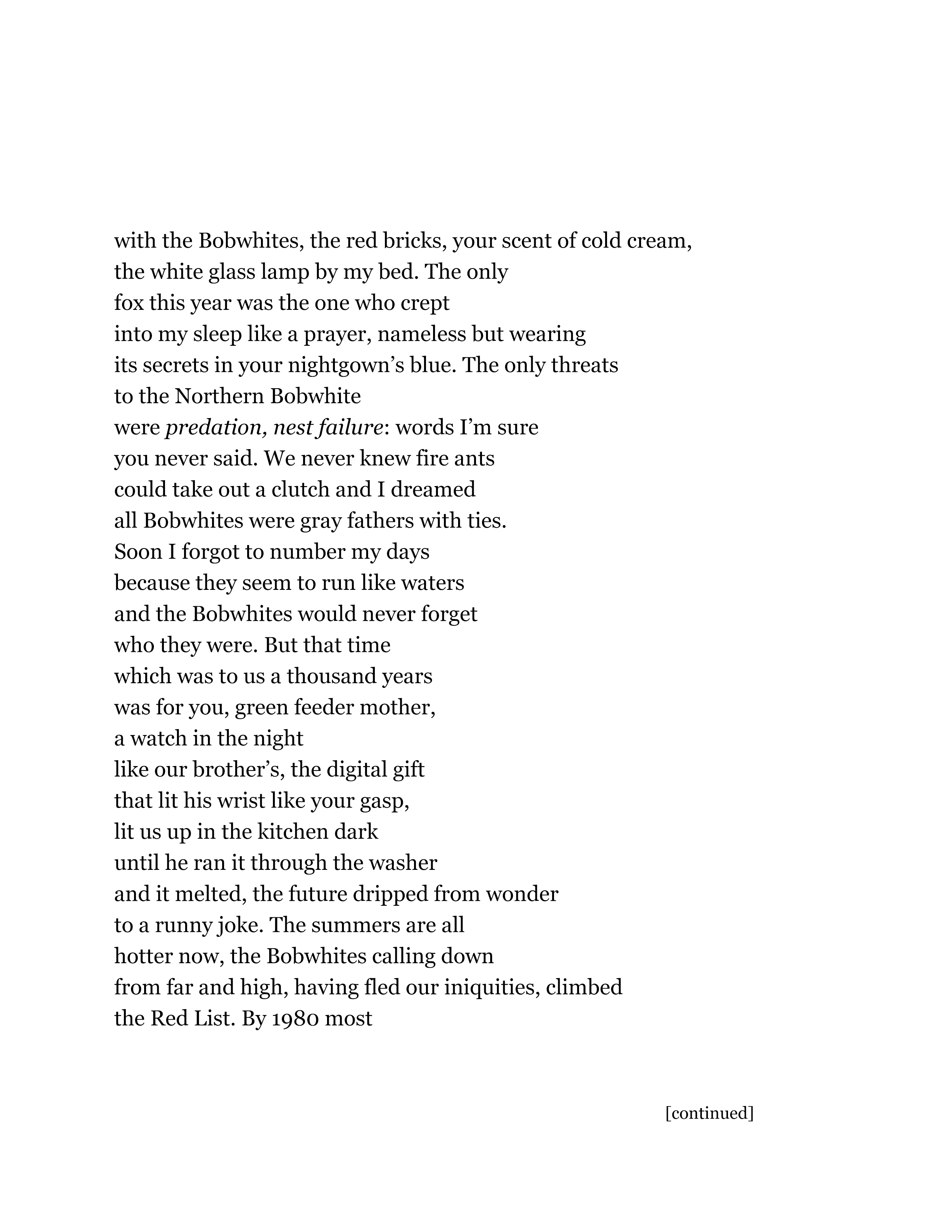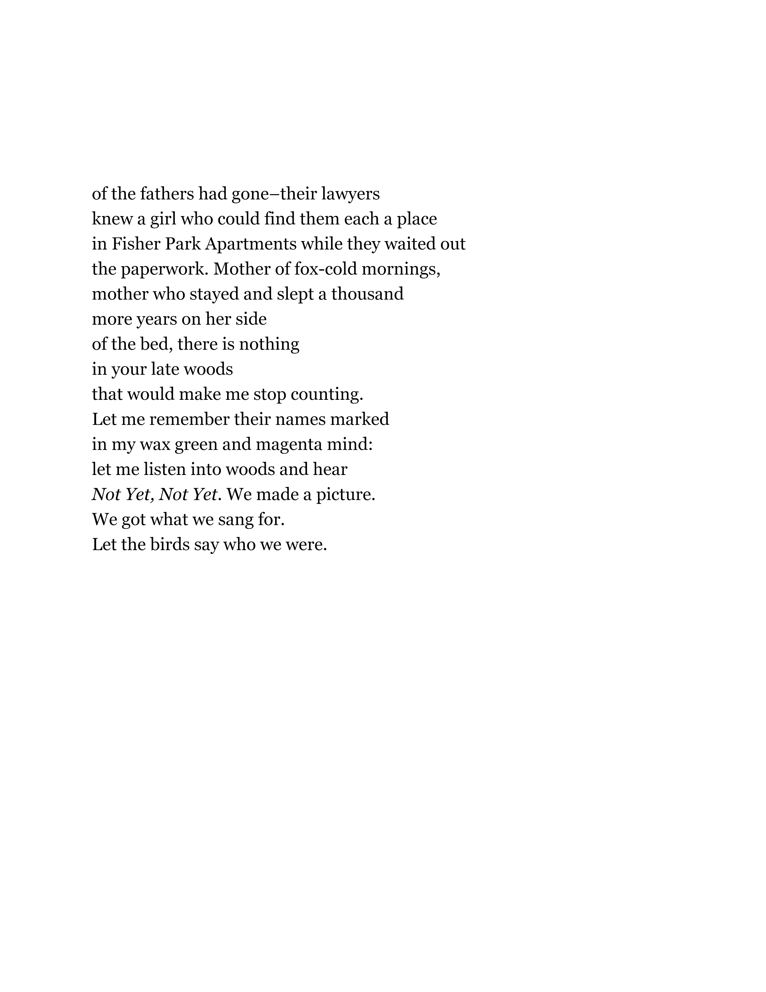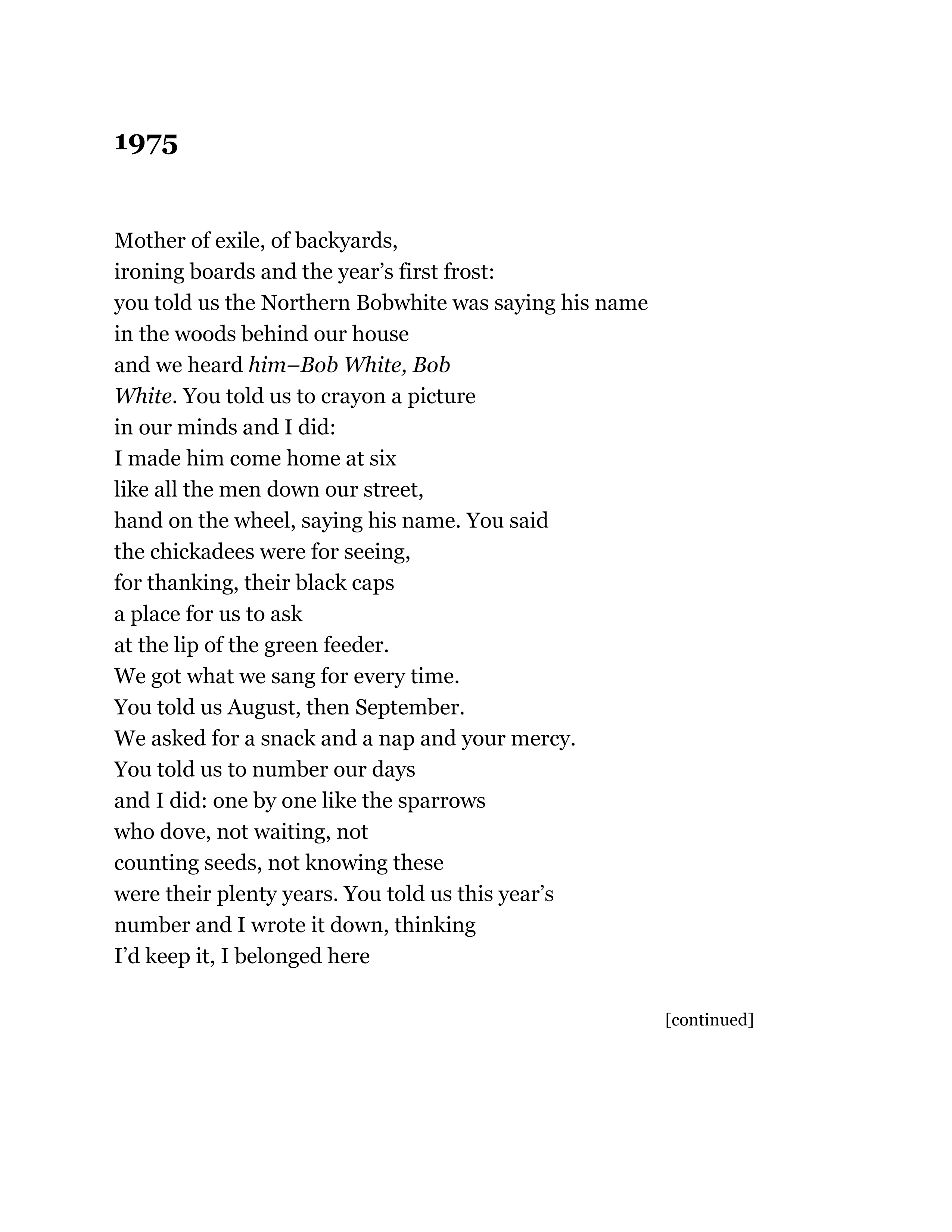 Growing up, my Jamaican mother told us many things. She told us how to name native birds. How to color within lines. How to play the piano. How to duck & cover in the back of our green Chevy—eyes closed, palms cupped over ears—if we were ever surrounded by a mob of whites, angry we went to school in thier suburbs. She told us how to pray. She told us the Bible passages found in “1975” on how to count our days and (maybe) gain wisdom. How to worry less than the stressless sparrows fed and feathered by our heavenly Father. How to walk unworried by the evils that may befall our bodies tomorrow. How to believe a day and a thousand years are interchangeable to the One who sits awake in the watches of the night, meditating on what might befall our little Black bodies. Lessons she hoped we’d teach our own children.